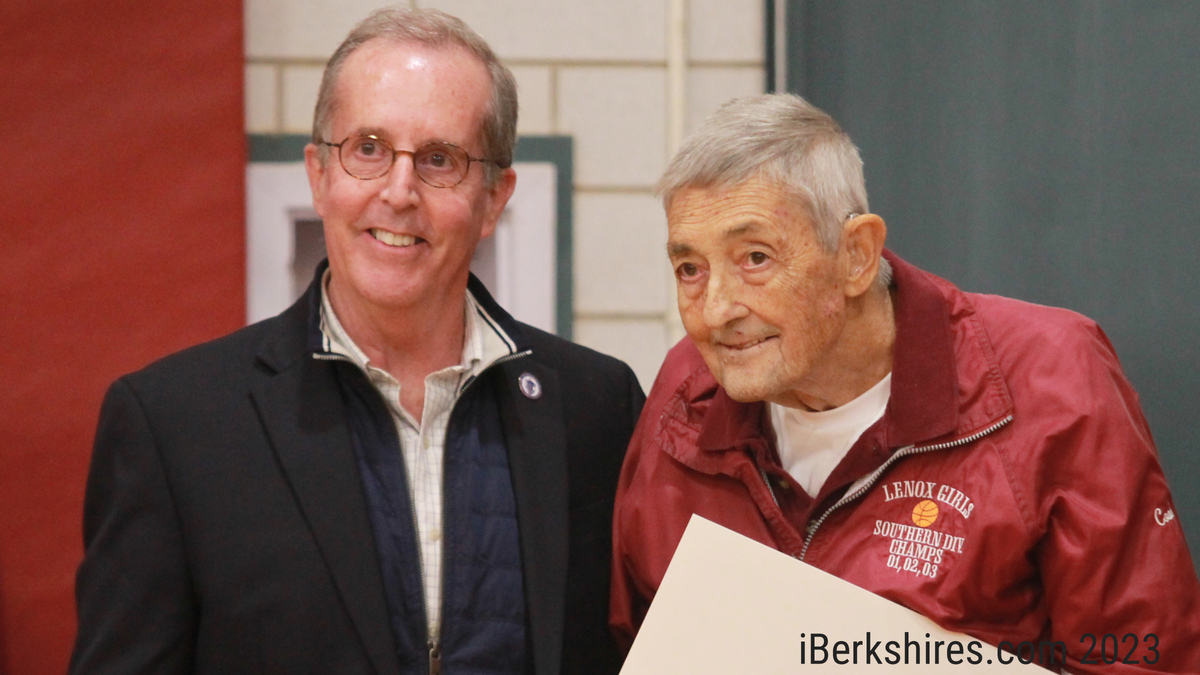 “Joe personally launched the debate and drama programs that still exist today. He set in motion the expansion of sports programs that include soccer, cross country and golf. And in 1962, he hired a young man with no coaching experience as a science teacher and assistant basketball coach. In a few minutes, we will honor that young man [Lafave] for the impact he had on thousands of Lenox citizens.