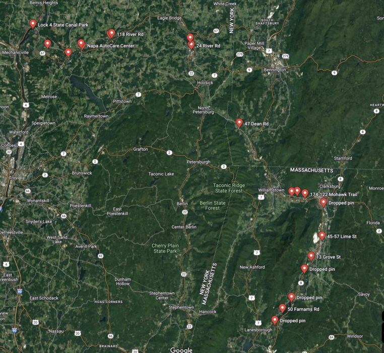 Stops marked along the way to the Hudson river.