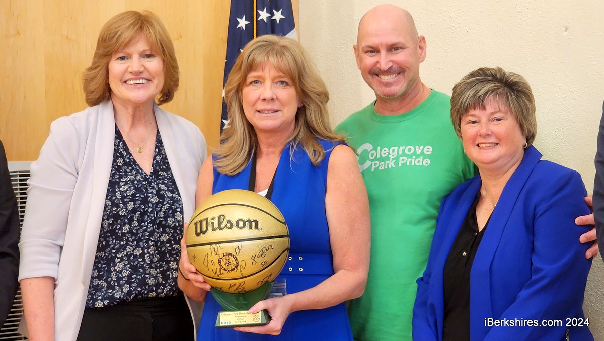 NORTH ADAMS, Mass. — The Boston Celtics gave gold to Colegrove Park Elementary School on Friday for scoring in the top 10 schools for attendance statewide. The school saw its chronic absenteeism numbers drop by 11 percent last year.
