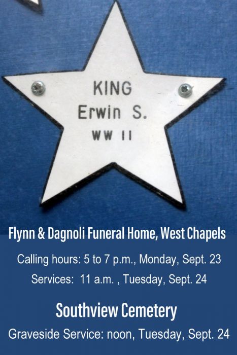 A wake for King will be held at Flynn & Dagnoli's West Chapels from 5 to 7 on Monday evening. Burial with military honors will a noon at Southview Cemetery following a service at 11 at the funeral home. Tammy Lussier of the American Legion Auxiliary said flags will be placed at the cemetery to symbolize those still missing in action. Students from Drury High School across the street from the cemetery are also expected to attend.