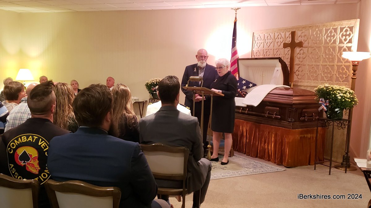 Erwin King's niece Judith LaBonte Richard speaks at his funeral at Flynn & Dagnoli Funeral Home on Tuesday.