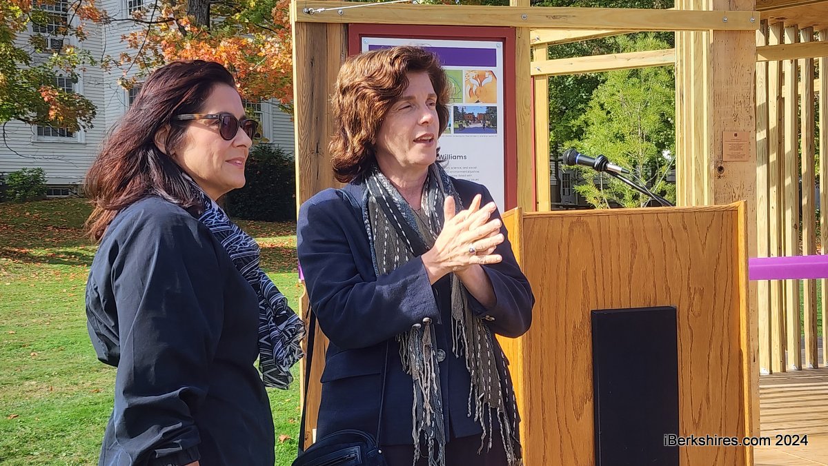 WILLIAMSTOWN, Mass. — A Williams College class has brought together art and architecture, sustainability and design, and learned a whole lot about carpentry and math, in a curling, open pavilion on Main Street.