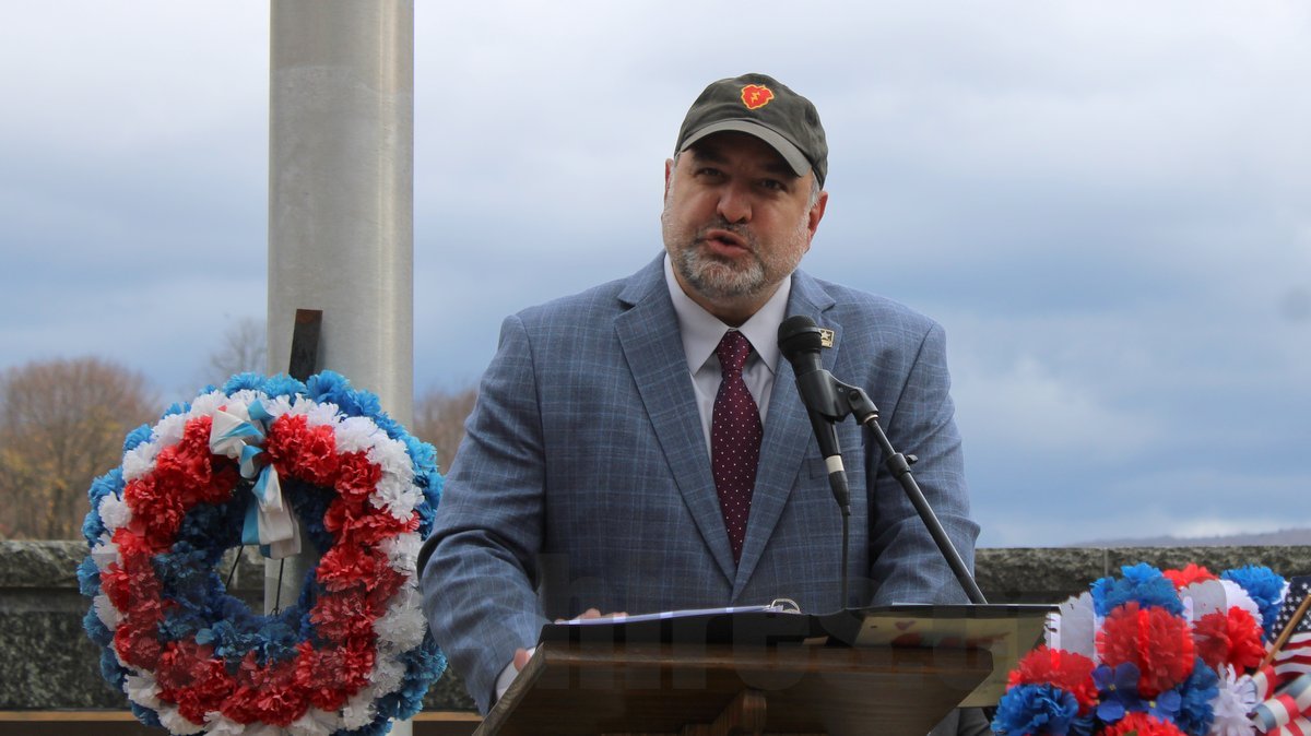 "I encourage you to talk about your military service in some small way today. Veterans connect Americans with the value of selfless service and inspire the next generation of volunteers to serve their country," said the Hoosac Valley High School graduate at North Adams' annual Veterans Day observances.