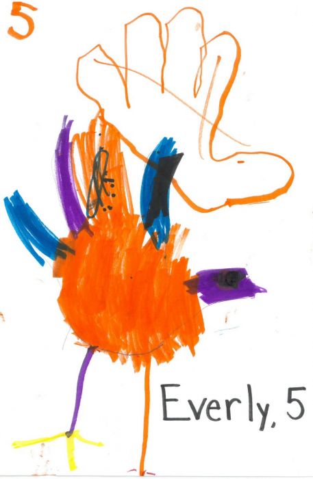 We hope you enjoy their cooking instructions — please don't follow them — and the "hand turkey" art they created to illustrate them.