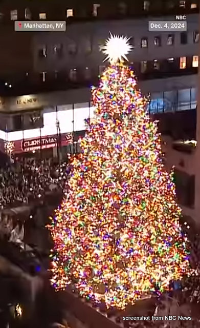 A screenshot of the West Stockbridge tree from its lighting in December.