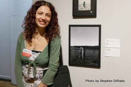 Wainwright exhibited a black and white photograph, titled "Bear," of a sheepdog she called Gus watching over his flock. The college show was juried by Chloe Zaug, associate director of the MassArt Art Museum, who selected 71 works by 58 artists representing 10 Massachusetts institutions from more than 230 submissions.