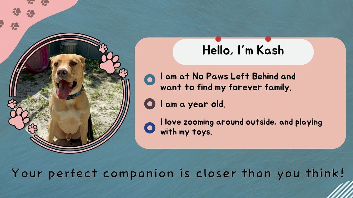You can request to visit Kash at No Paws Left Behind; read more about him on the shelter's website.