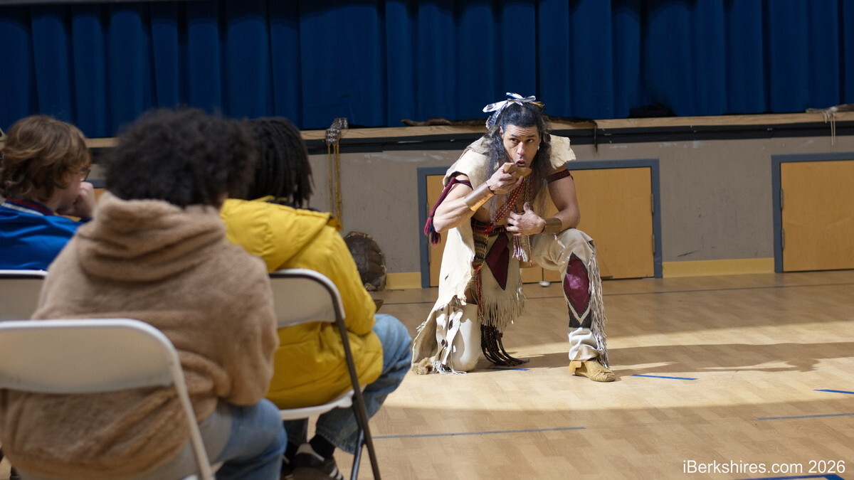 ADAMS, Mass. — Native American actor and activist Annawon Weeden brought his one-man show to Berkshire Arts and Technology (BArT) Public Charter School, confronting students with a challenging and visceral journey through American history.