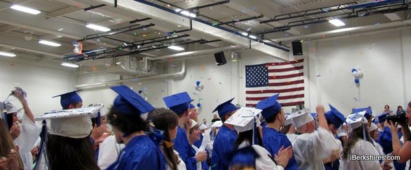 The smallest class in recent memory to graduate from the school was far outnumbered by the friends and family who packed in to hoot and cheer as each crossed the stage. State Rep. Gailanne Cariddi hopped on stage to hand a diploma to younger relative Dominick Cariddi.